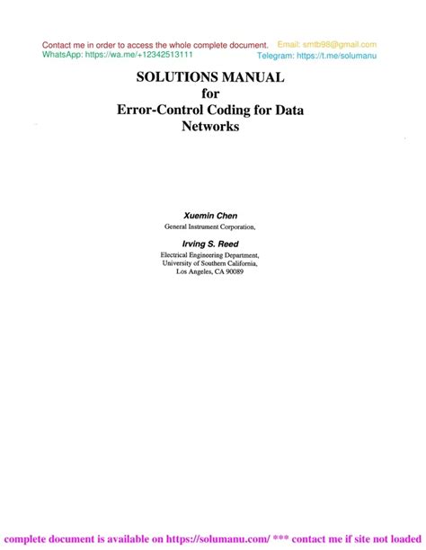 Free PDF ERROR CONTROL CODING SOLUTION MANUAL DOWNLOAD Kindle Editon ManyBooks